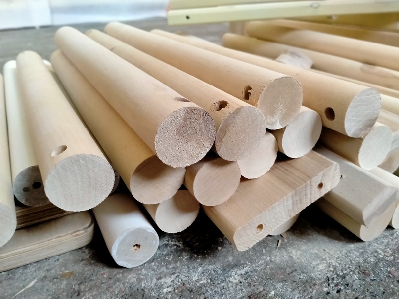 Из деревянного бруса изготавливаются все детали кроватей, спорта, опорные рейки, т.е. всё, что укладывается в размер 100 мм в ширину, 50 мм в толщину и до 3х метров в длину. Брус, изготавливается из цельной, качественной доски, поэтому прочный, т.к. в структуре не содержит склеек и является абсолютно натуральным материалом с природными свойствами живого, хорошо просушенного дерева.