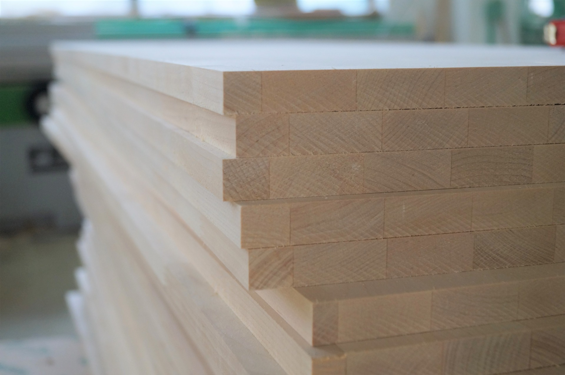 Это склеенные просушенные ламели из натуральной доски или непосредственно заготовки из кругляка самого дерева. Бывает паркетная склейка и цельно-ламельная, легко определяется по "рисунку" поверхности. Это технология, позволяющая сделать качественный мебельный щит, чтобы сохранить его геометрию, при смене сезонов и влажности в комнате при дальнейшей эксплуатации , а также обеспечить прочность габаритного корпусного изделия.