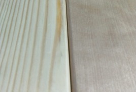 Немного подробнее о сосновом щите. Даже при покупке хорошего материала, мы не застрахованы от "внутреннего" коварства сосны, т.е. при производстве и дальнейшей эксплуатации могут проявиться её природные свойства, т.е. смоляные слёзы. Находятся они в смоляных "кармашках", которые не видимы снаружи, также щит из сосны, состоящий из разных ламелей, при обработке, проявляет себя по разному, это отражается в возможных "провалах" краски и неожиданных трещинах, даже при небольшом перепаде температуры. Поэтому рекомендуется окрашивать сосну с видимой текстурой дерева.
